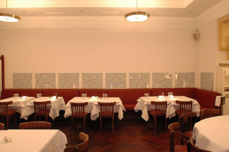 Für Weinliebhaber bietet der in das Art Déco Interieur des Restaurants eingepaßte begehbare Weinschrank mit zwei unterschiedlichen Temperaturbereichen eine Auswahl von 220 Weinen aus aller Welt.