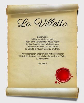 Nach einer verlängerten Pause wegen Umbau / Anbau eines Wintergartens, freuen wir uns sehr das Restaurant La Villetta in neuem Glanz zu eröffnen !